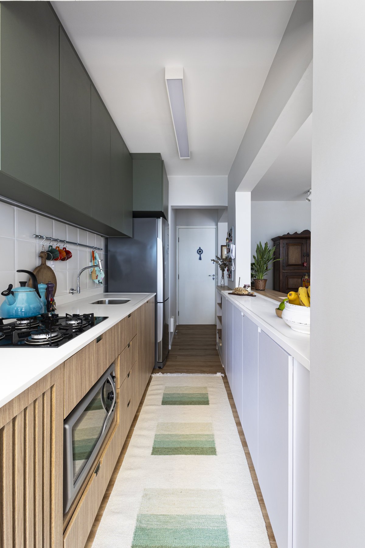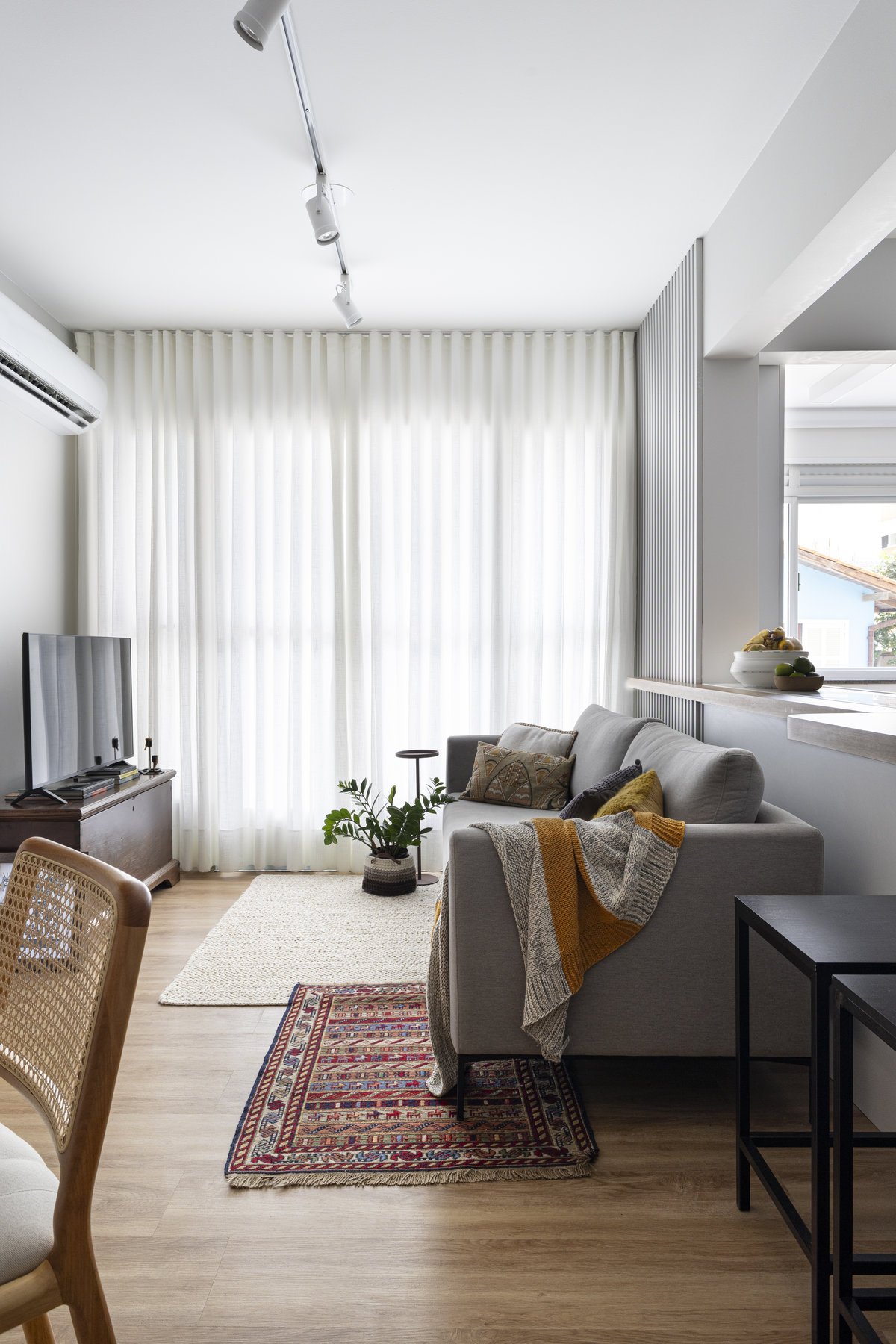 Projeto de reforma de apartamento localizado no centro de Florianópolis. Nesse projeto, pensamos o lar de mãe e filho em planta enxuta, usando a marcenaria de forma inteligente para otimizar os espaços. Olhamos com atenção para as memórias e objetos da família, utilizando os móveis e soluções novas para valorizar as peças lindas do acervo pessoal.